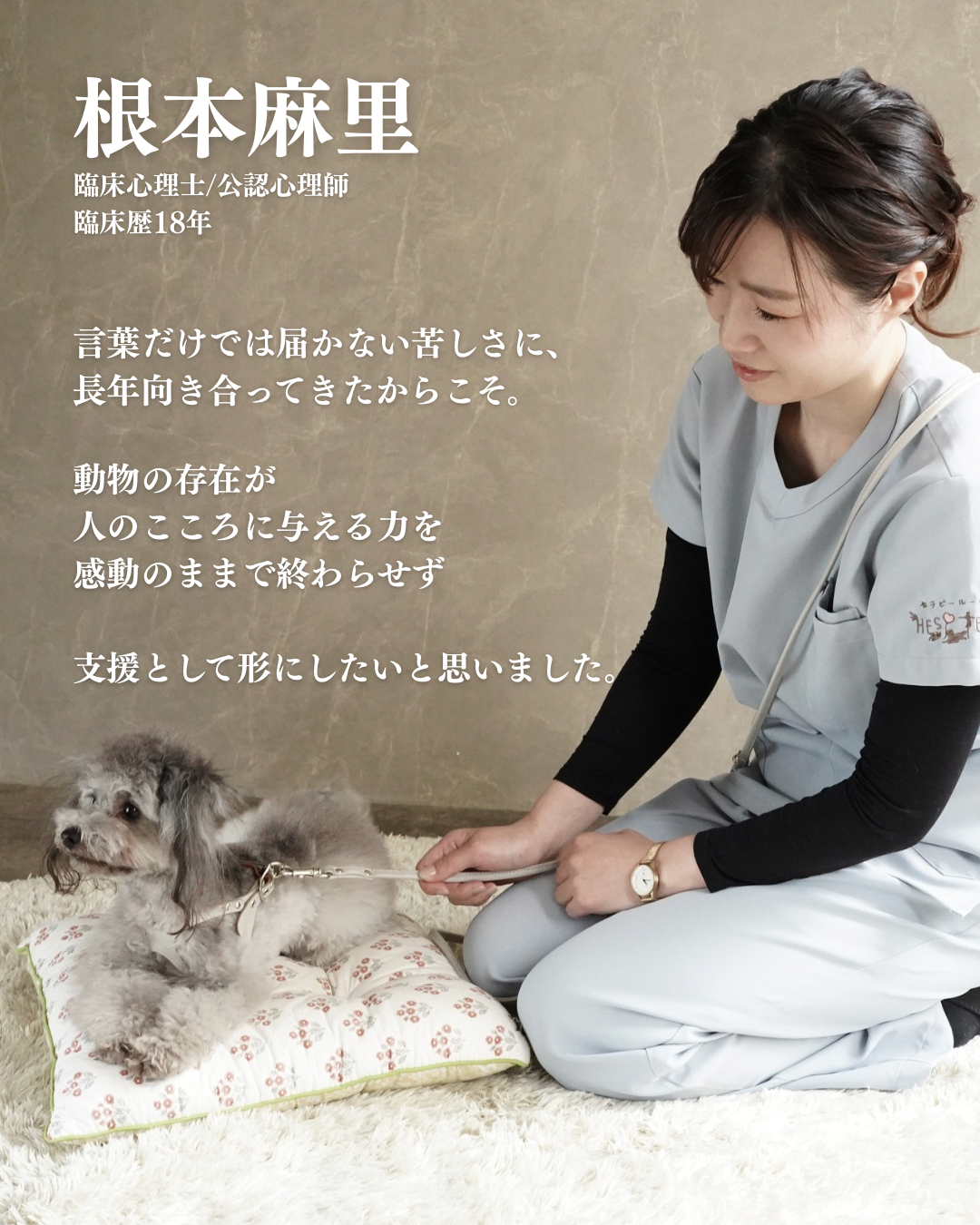 日本ではまだめずらしい実店舗での動物介在療法を行いながら、愛犬とともに動物介在活動の現場にも参加。近年はセラピードッグ特集で雑誌取材を受けるなど、動物介在支援の実践者として注目されている。